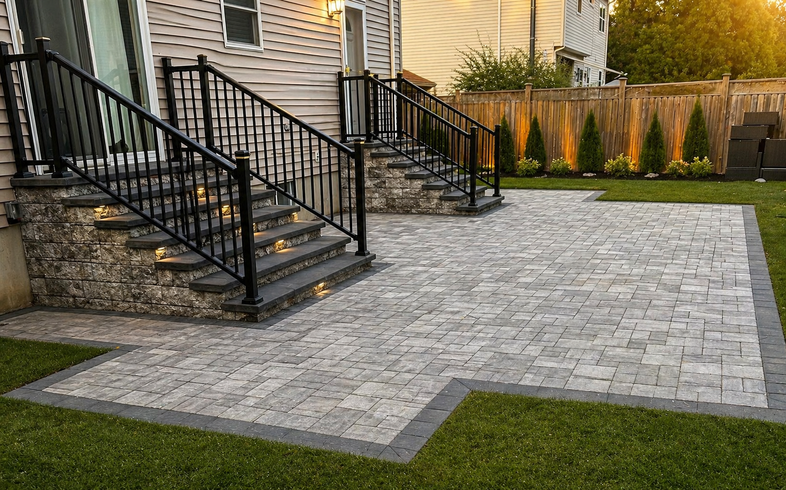 This project highlights our precision masonry and attention to detail, featuring a custom paver patio with a clean, modern fire feature foundation. We specialize in designing and installing high-quality patios, driveways, walkways, and outdoor living spaces that enhance both function and curb appeal. From initial layout to final finish, our work is built to last, using durable materials and expert craftsmanship to create beautiful, low-maintenance surfaces tailored to each property.